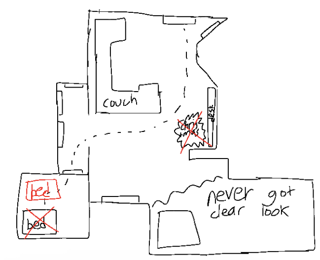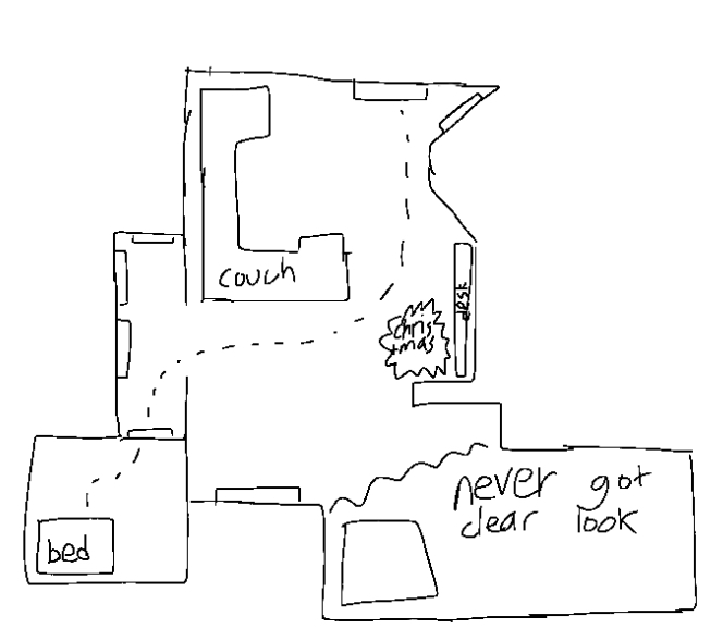 So, I get back up, and try to recount the amount of footsteps from my room to the door.